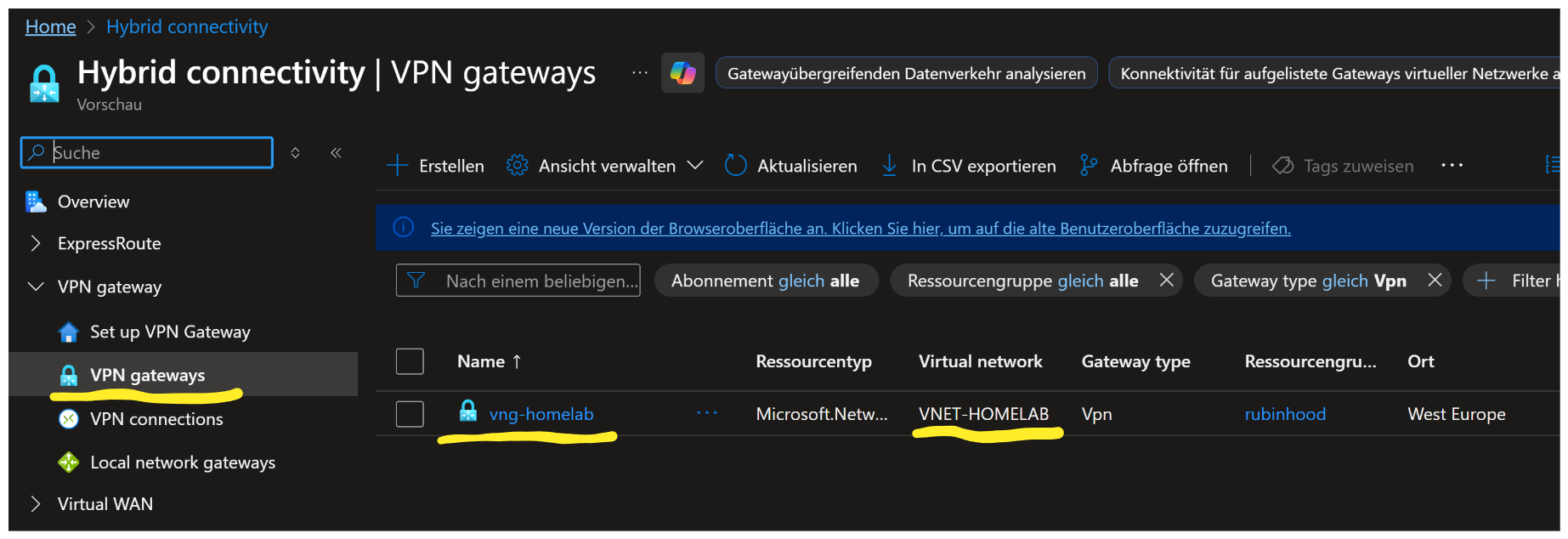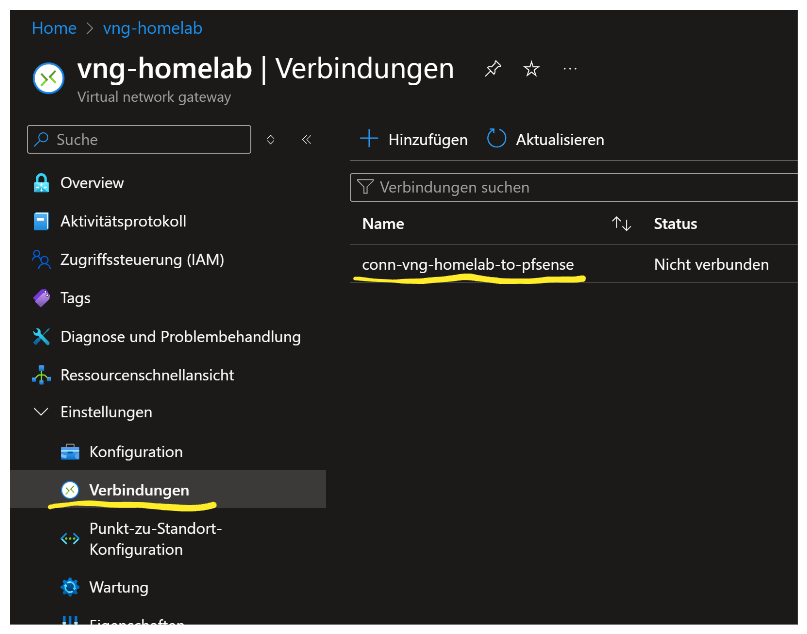 Azure Portal → vng-homelab → Verbindungen → Hinzufügen
