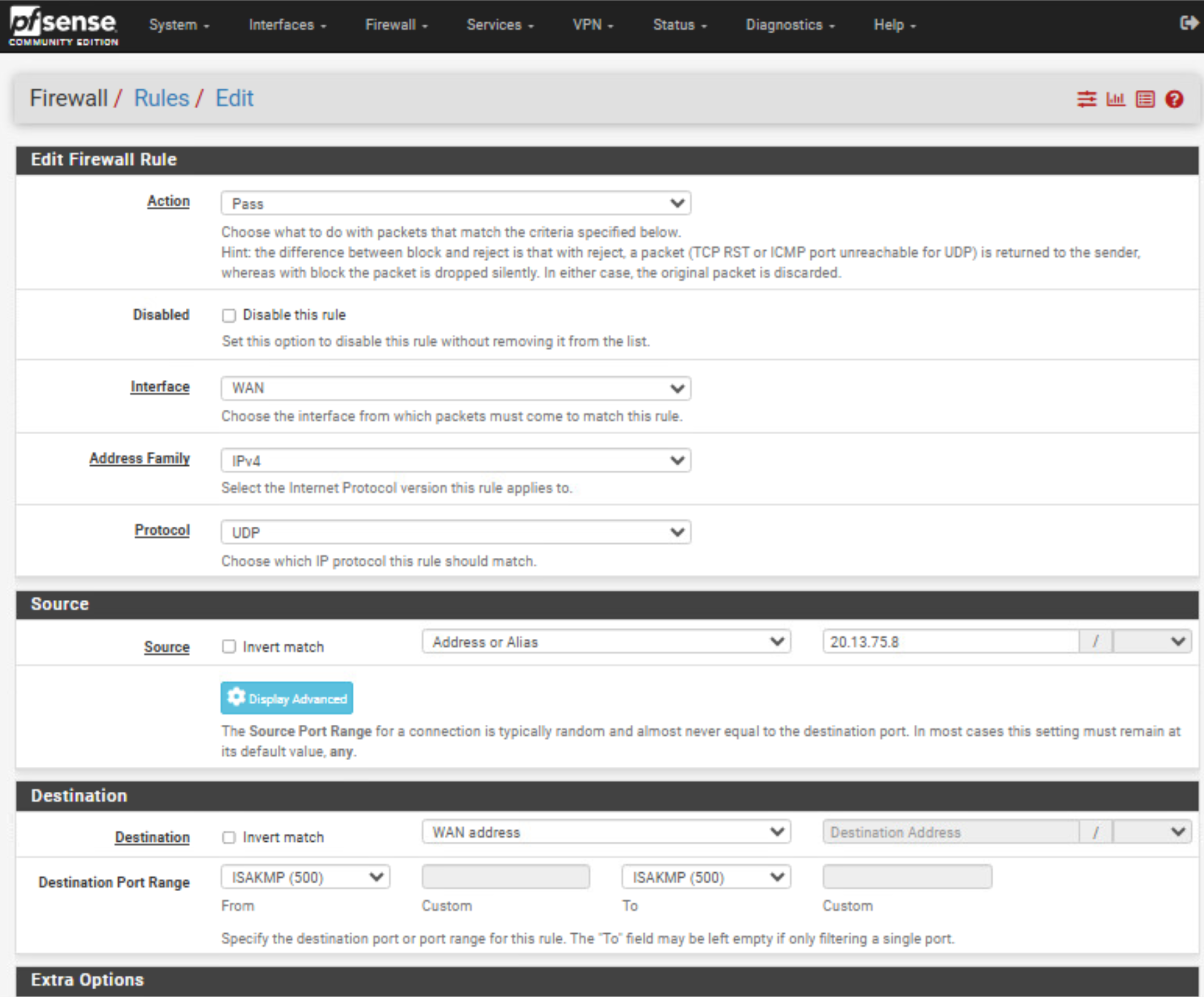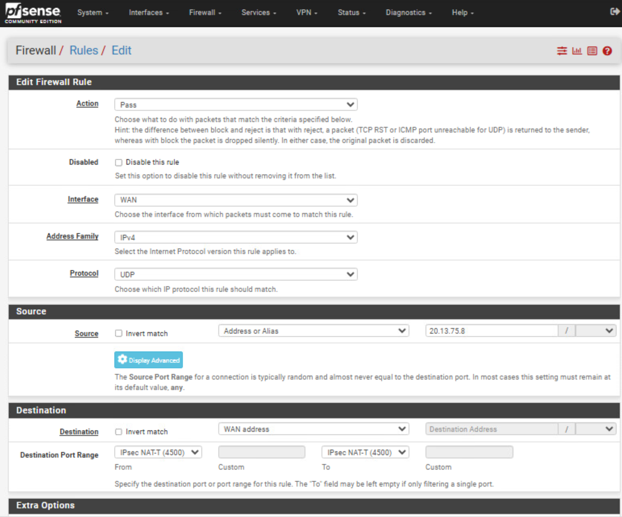 Damit IKE/ESP überhaupt in pfSense ankommen.