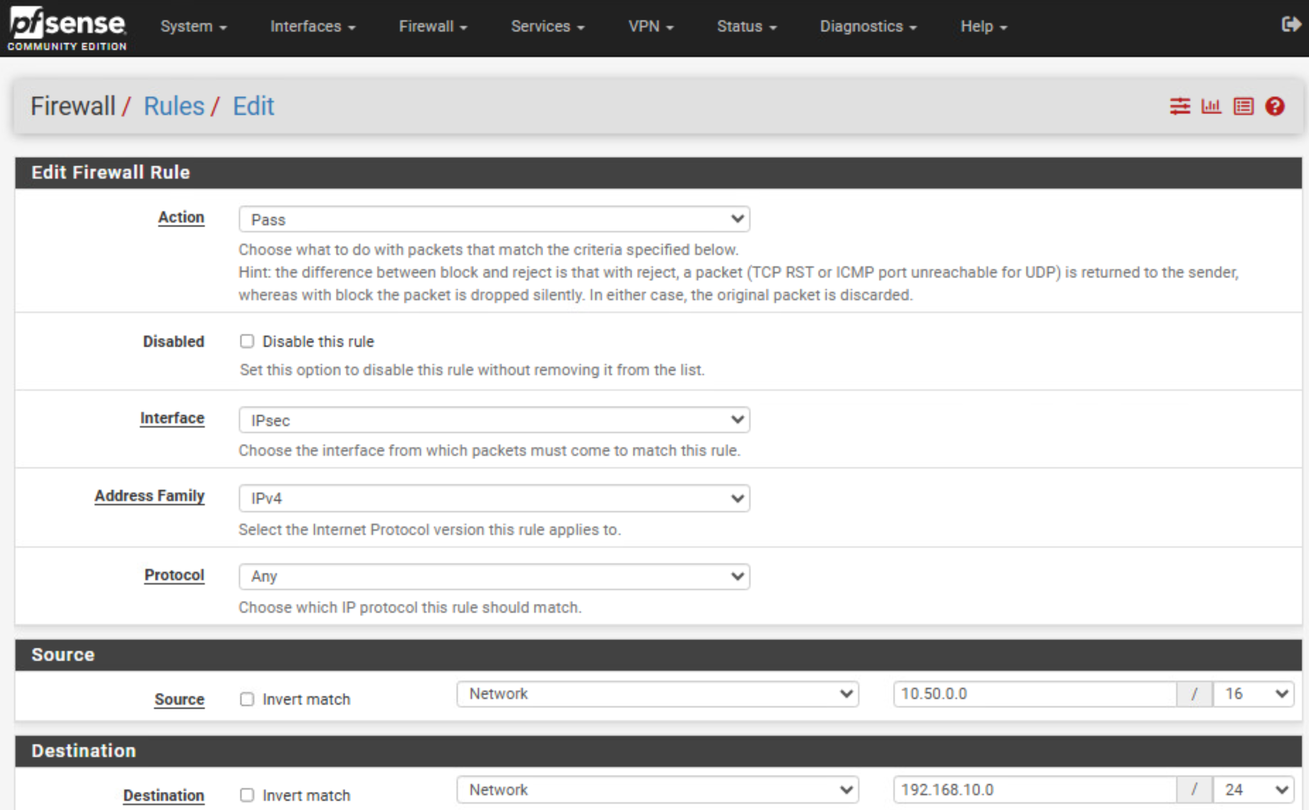 Firewall → Rules → IPsec