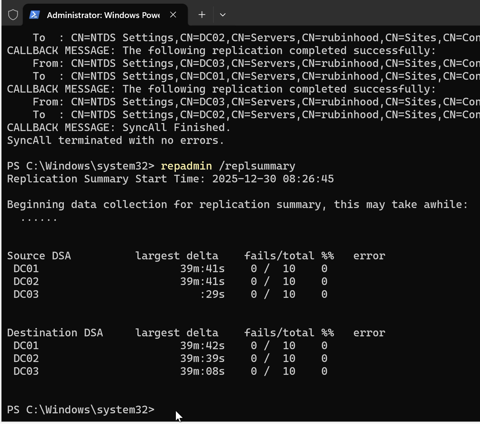 repadmin /replsummary -