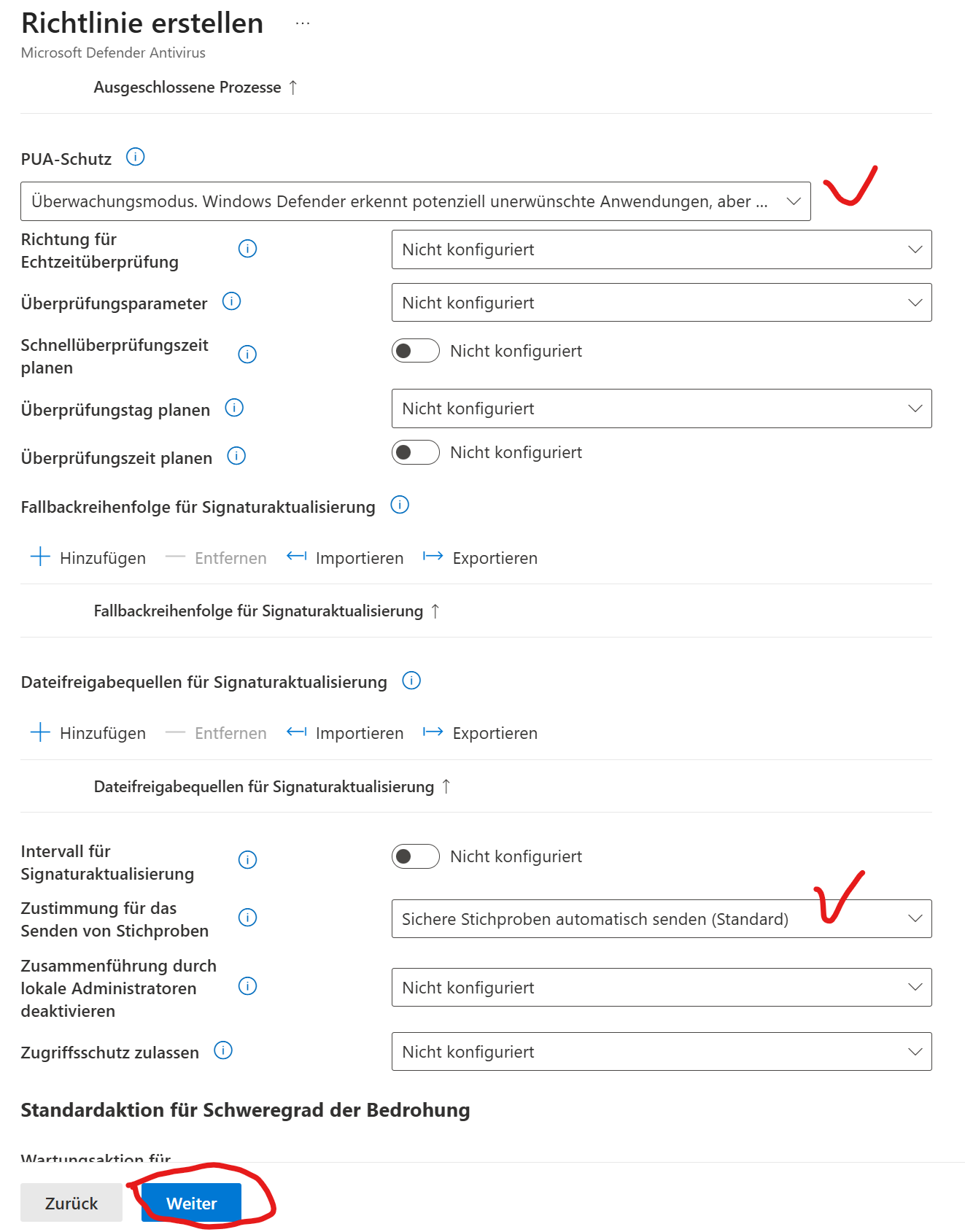 Schritt 2: Wichtige Defender-Einstellungen setzen