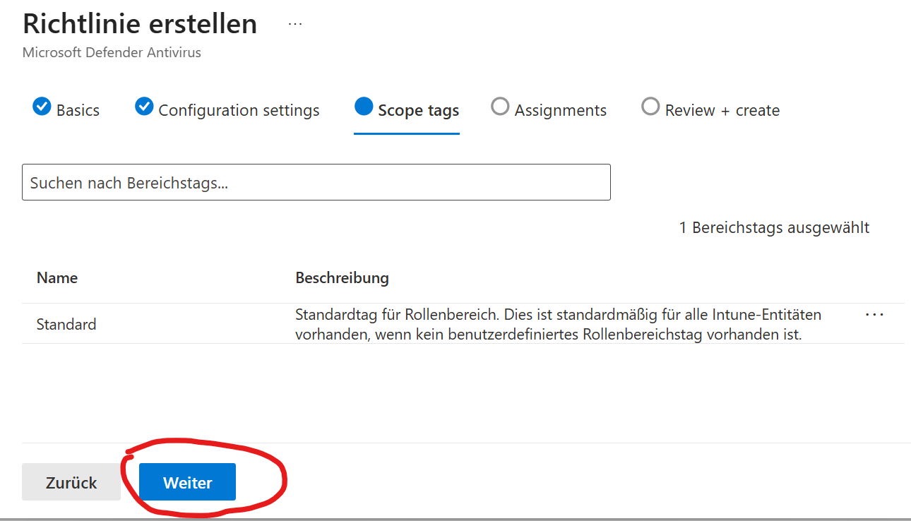 Im Schritt Scope tags lässt du einfach den Standardwert stehen: