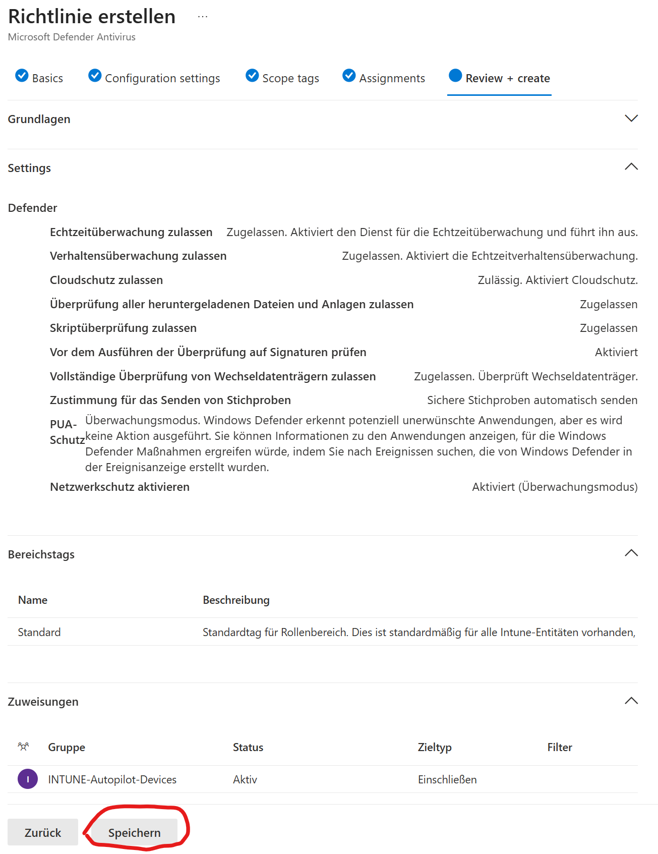 Damit hast du auch lokal bestätigt, dass der Defender-Schutz aktiv ist und die Intune-Richtlinie erfolgreich angekommen ist.