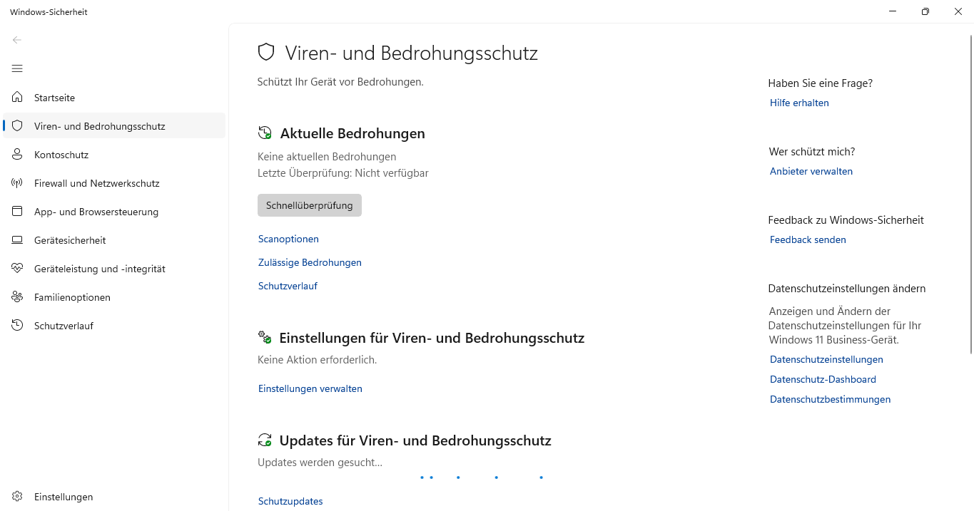 Windows-Sicherheit → Viren- und Bedrohungsschutz