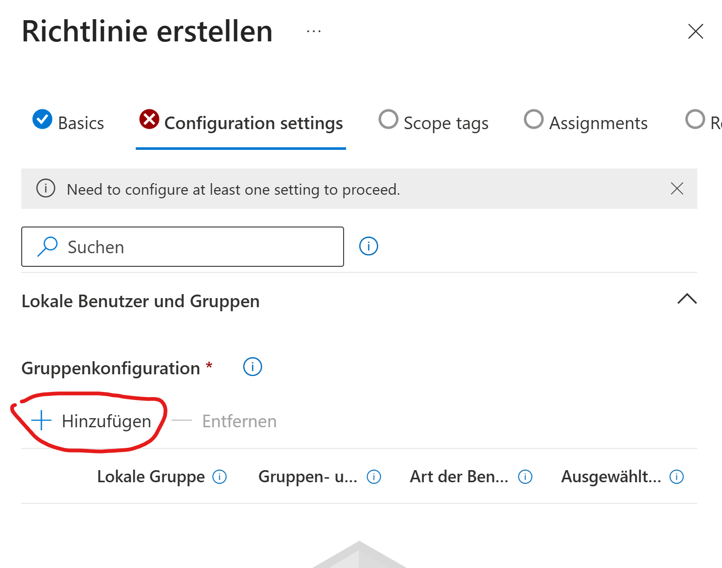In den Configuration settings bei Lokale Benutzer und Gruppen auf: