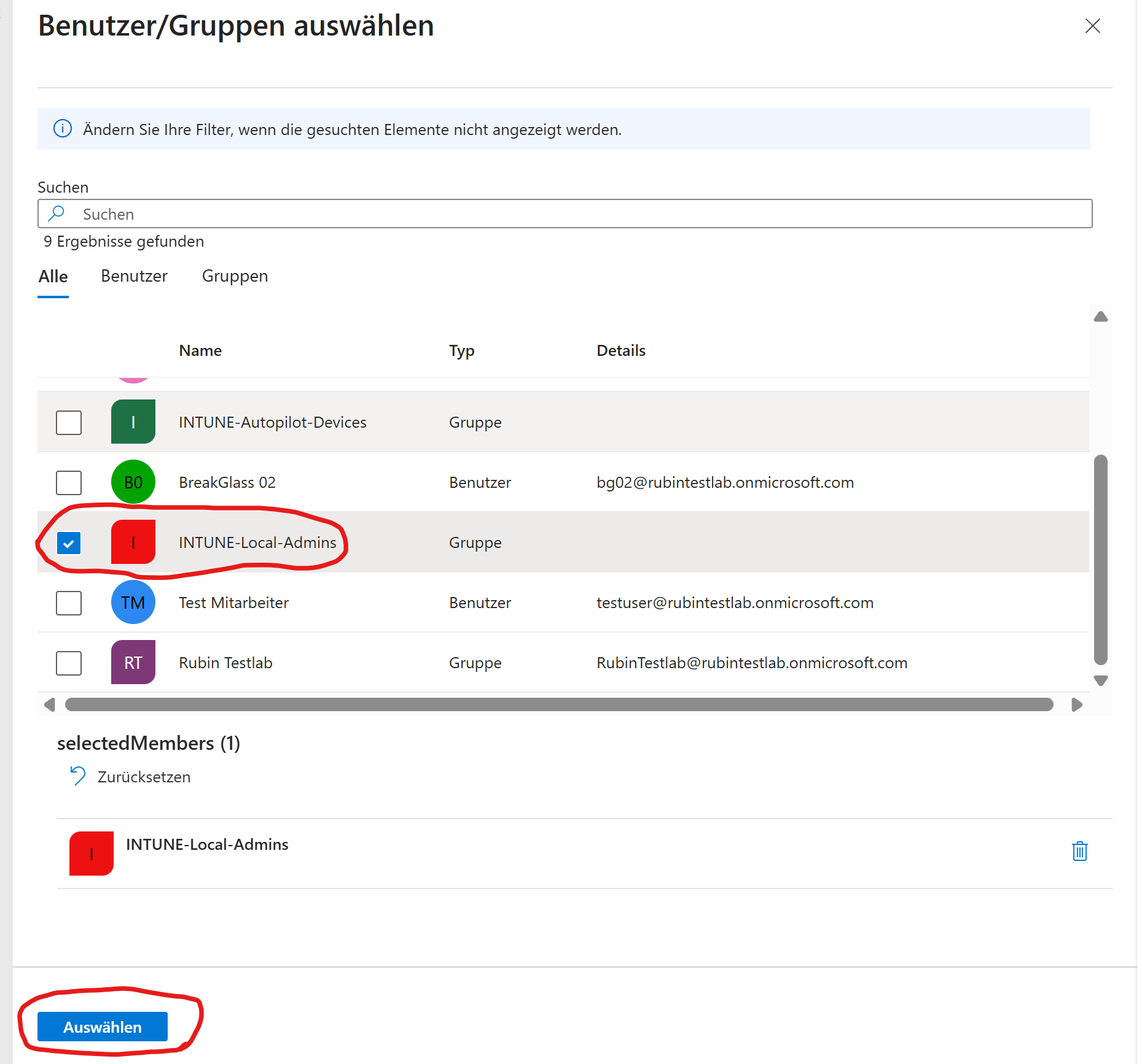 Art der Benutzerauswahl: Benutzer/Gruppen