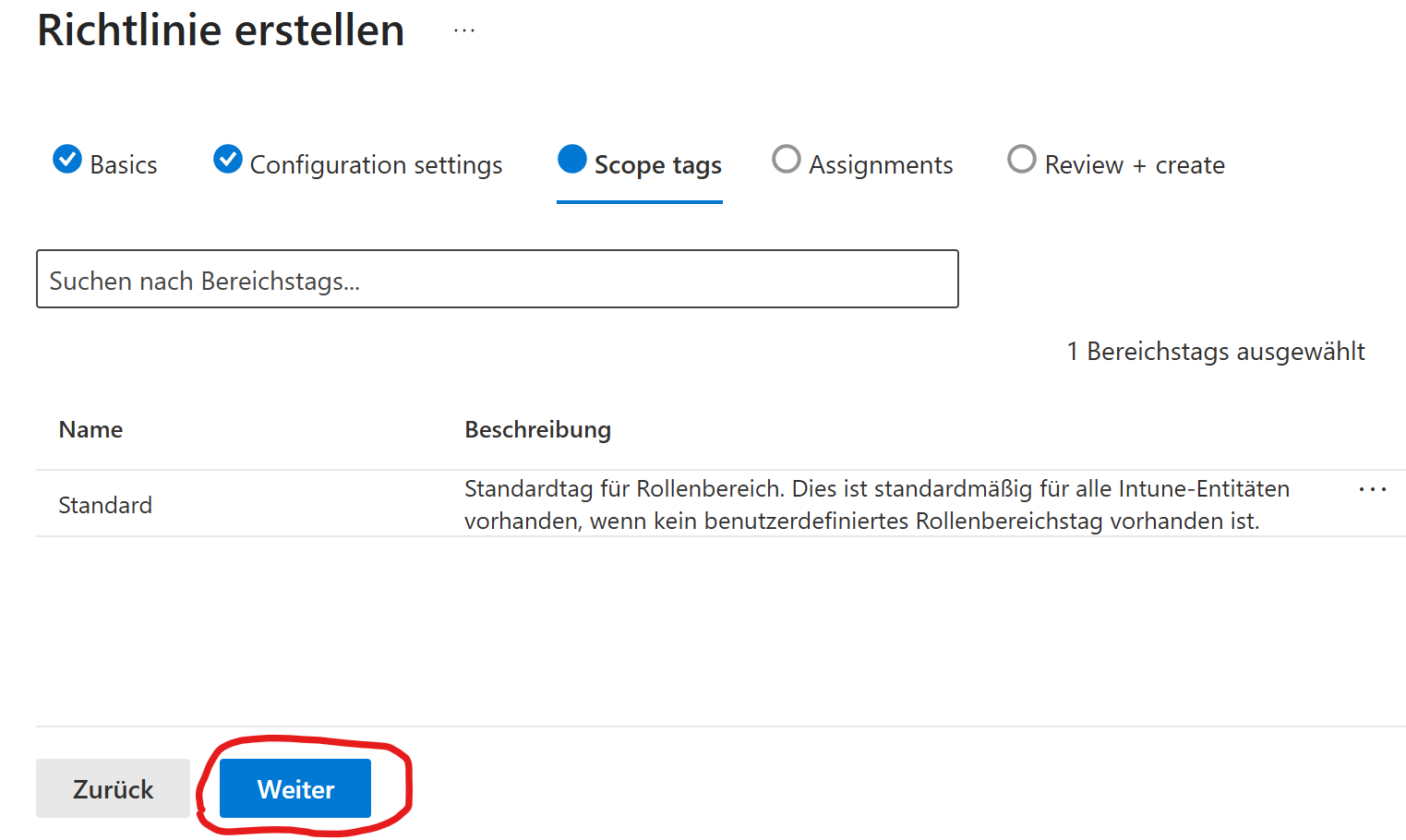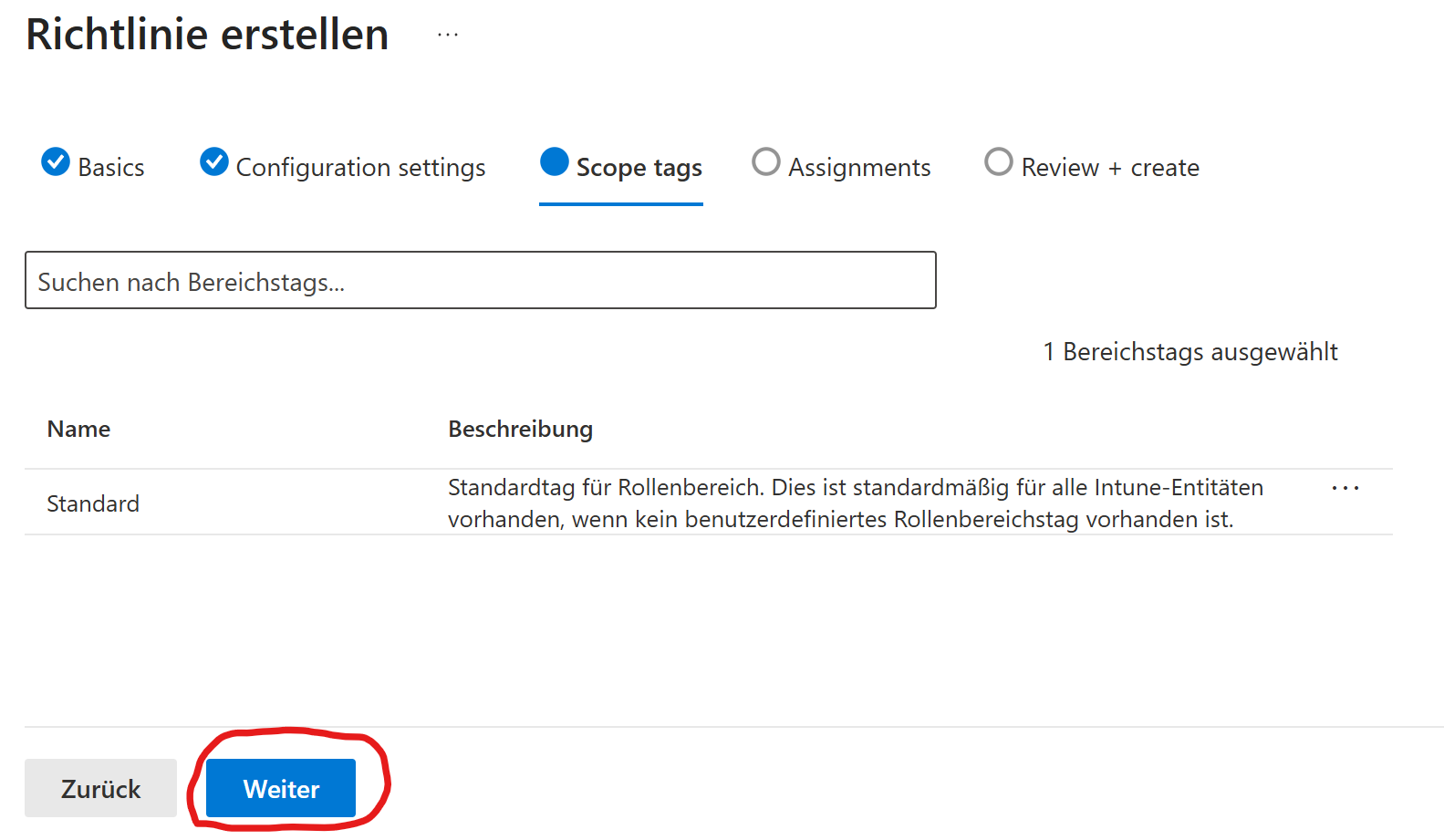 Bei Scope tags bzw. Bereichstags nichts ändern.