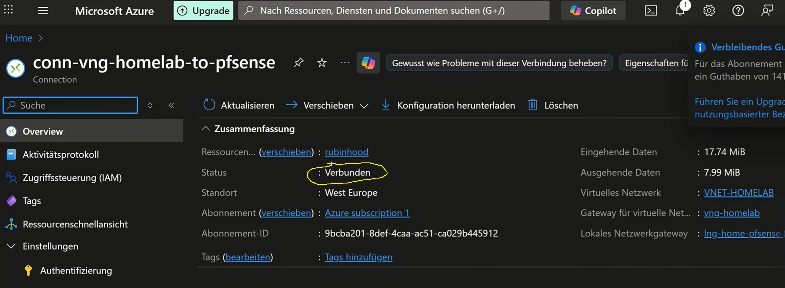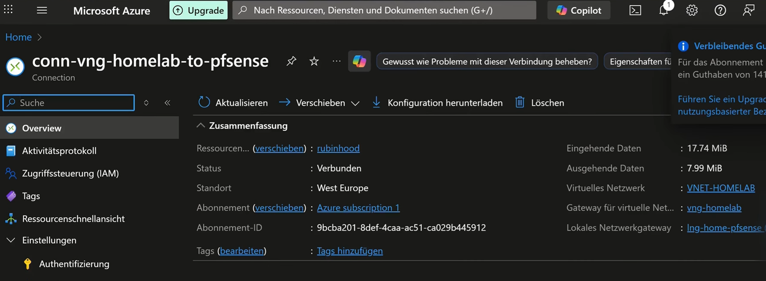 Azure Portal → vng-homelab → Verbindungen → Hinzufügen