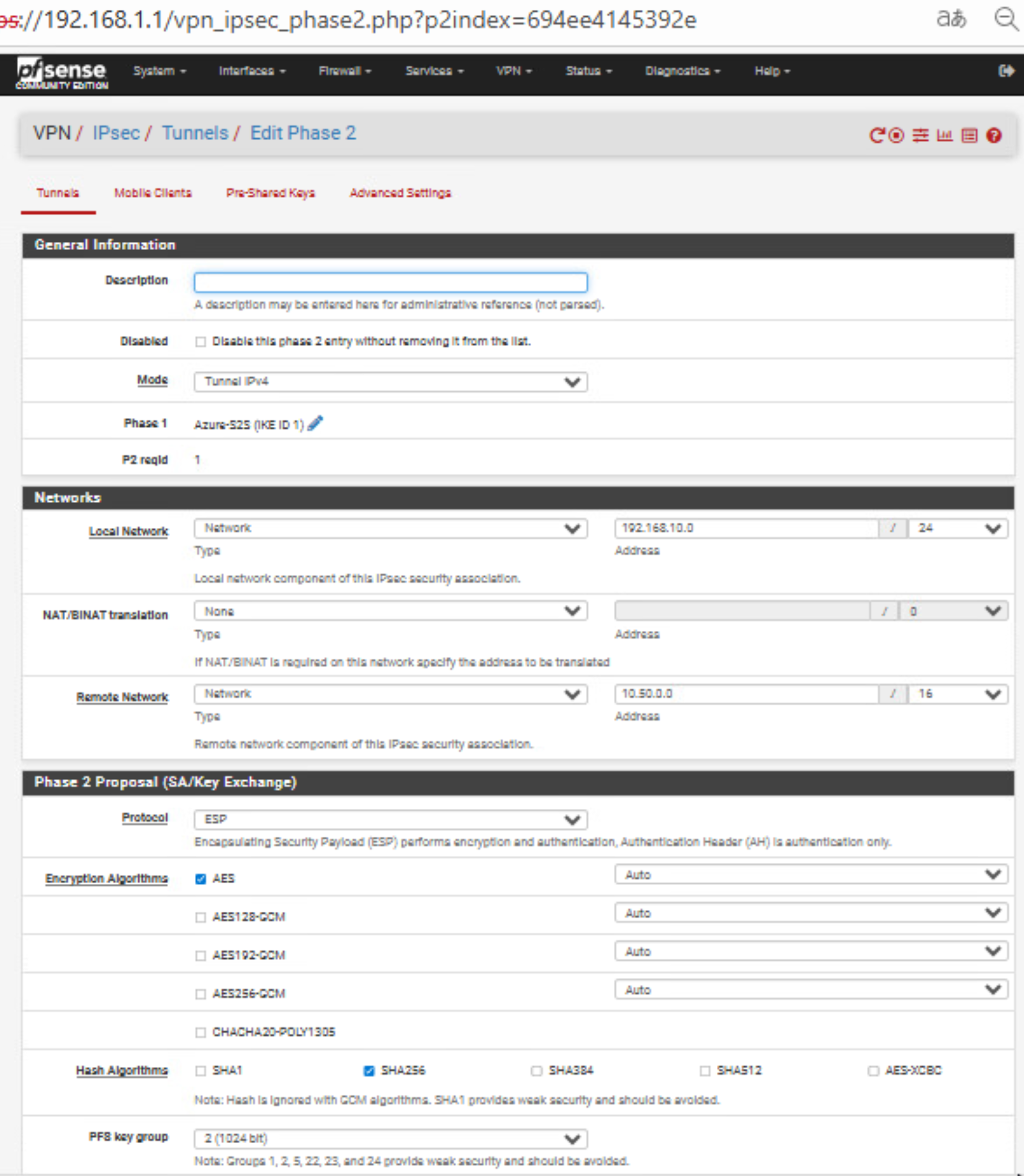 Phase 2 definiert, welche Netze wirklich durch den Tunnel dürfen (dein LAN ↔ Azure LAN).