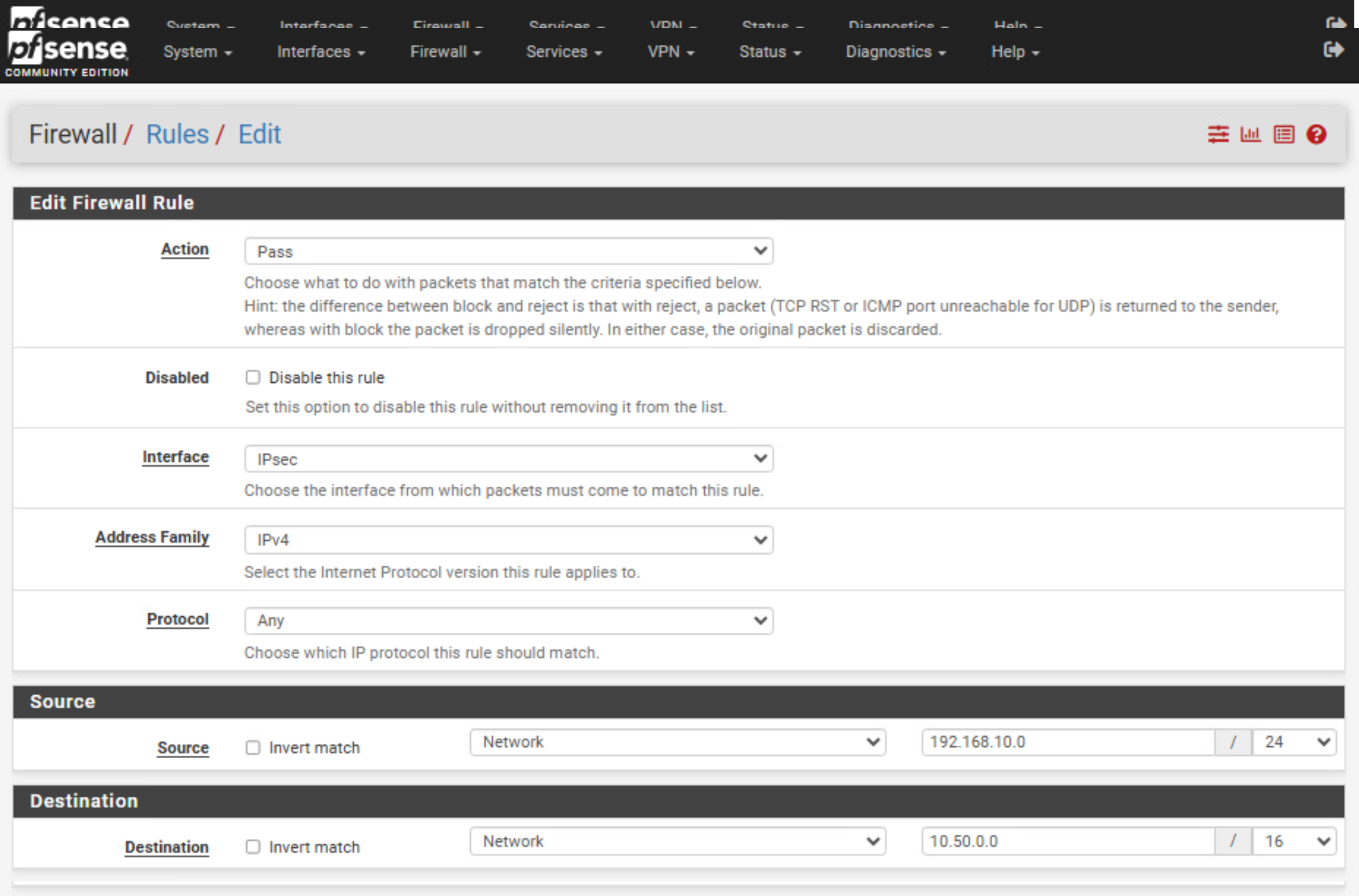 Firewall → Rules → IPsec