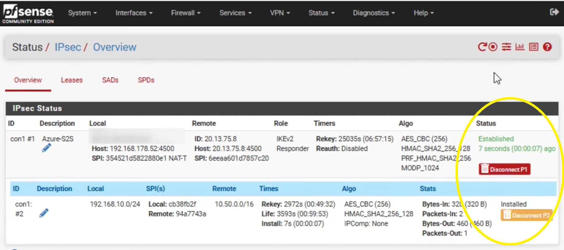 Status → IPsec öffnen