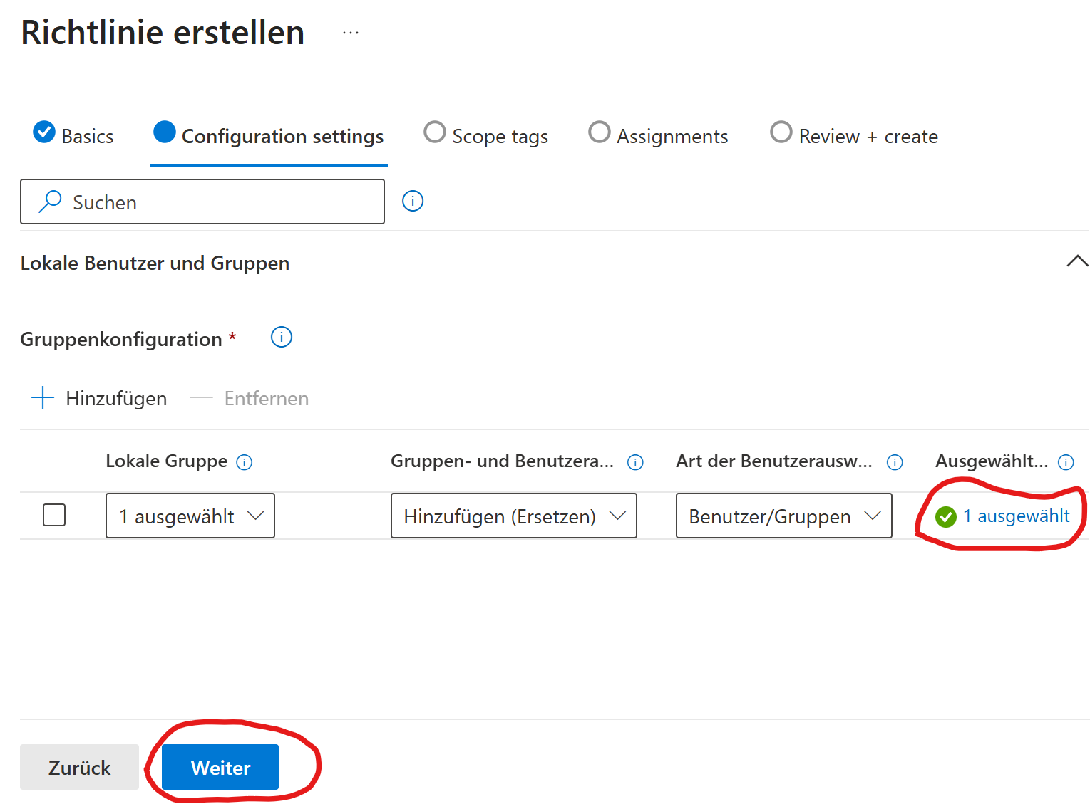 In den Configuration settings bei Lokale Benutzer und Gruppen auf: