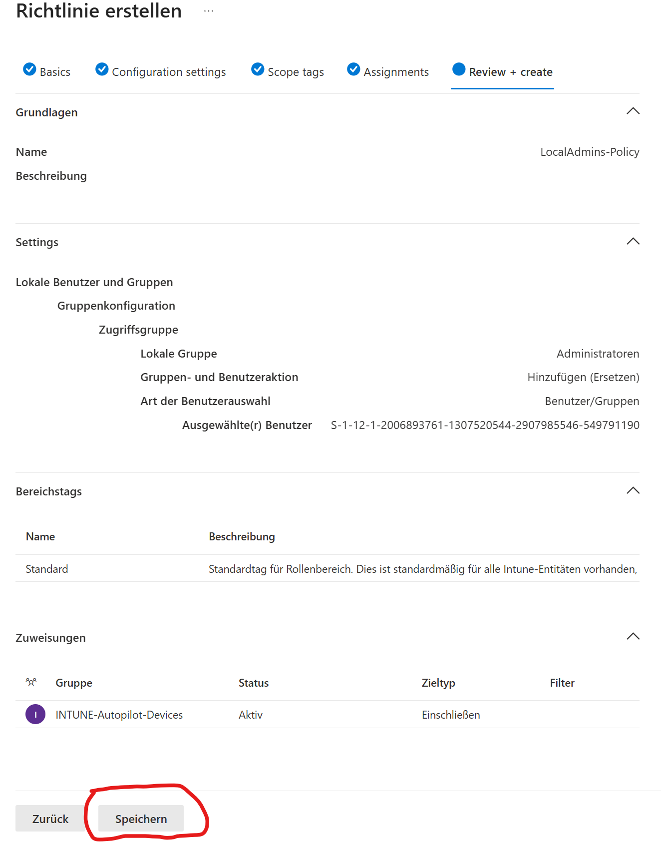 Die Zusammenfassung prüfen und auf Speichern klicken.