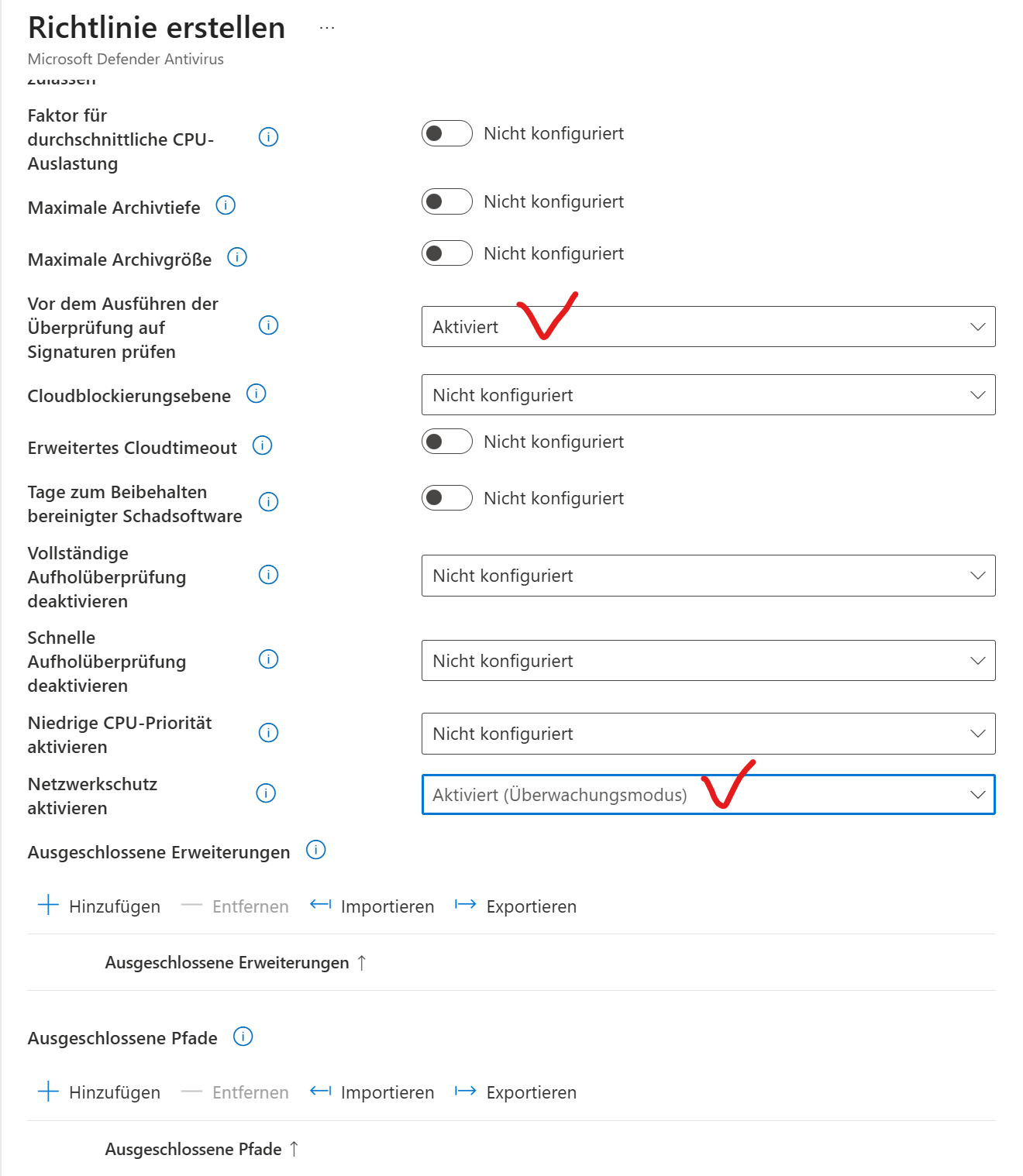 Damit hast du auch lokal bestätigt, dass der Defender-Schutz aktiv ist und die Intune-Richtlinie erfolgreich angekommen ist.